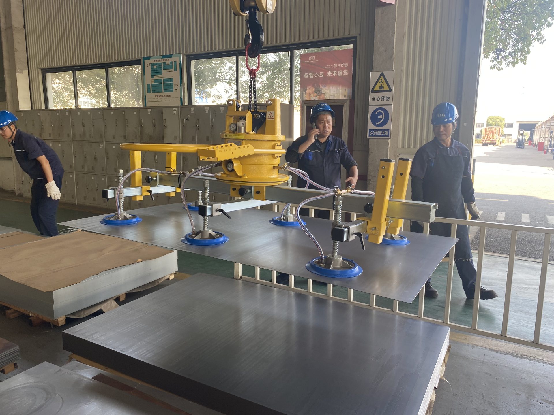 Product features: suitable for hoisting and handling of aluminum plates.stainless steelplates, and other metaland non-metalplates with smooth anddense surfaces;multiple suction cups, multi-point absorption thin sheets are more safe and reliable.